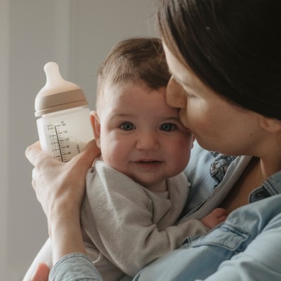 Estos biberones incluyen la tetina de Flujo Adaptable, recomendada para lactancia mixta. Deja pasar más o menos líquido dependiendo de la fuerza con la que el bebé succione, igual que pasa con el pezón materno.