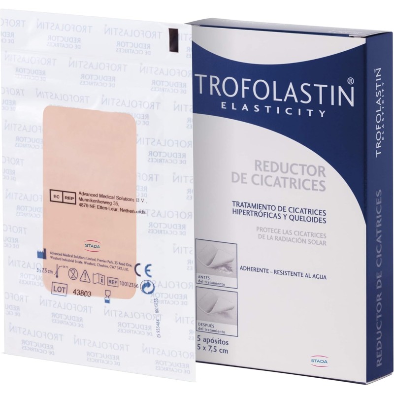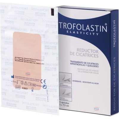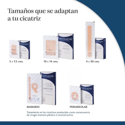 Trofolastin Reductor de Cicatrices puede mantenerse fijado en la superficie de la piel 24 horas al día.Es resistente al agua y, por tanto, puede estar hasta siete días continuamente adherido.
