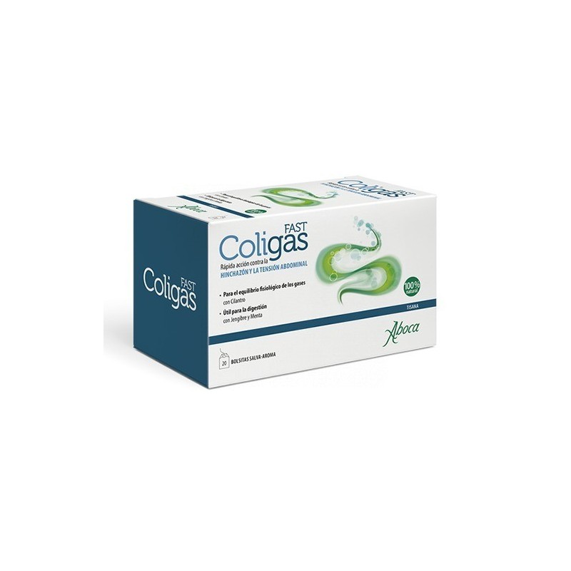 CXoligas tisanas favorece la rápida acción contra la hinchazón y la tensión abdominal, con cilantro para el equilibrio fisiológico de los gases en el tracto digestivo, con jengibre útil para la digestión. ColiGas Fast tisana puede ser útil en caso de hinchazón abdominal, a menudo asociada a tensiones molestas que pueden sentirse inmediatamente después de las comidas o durante el día.