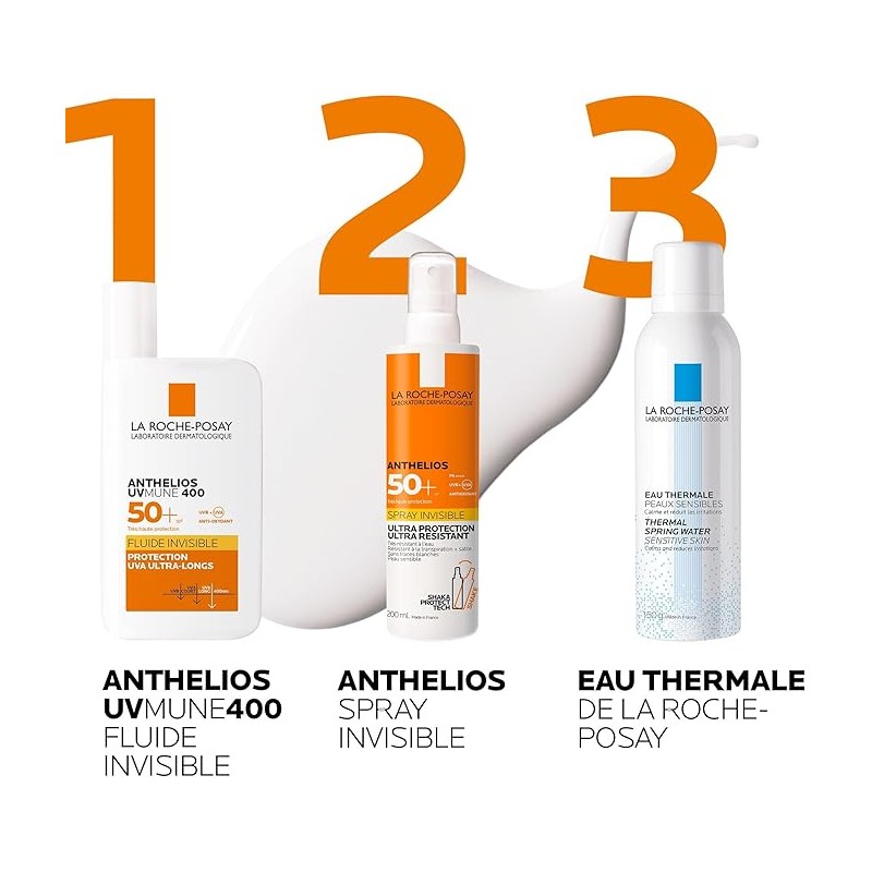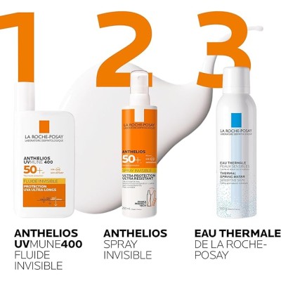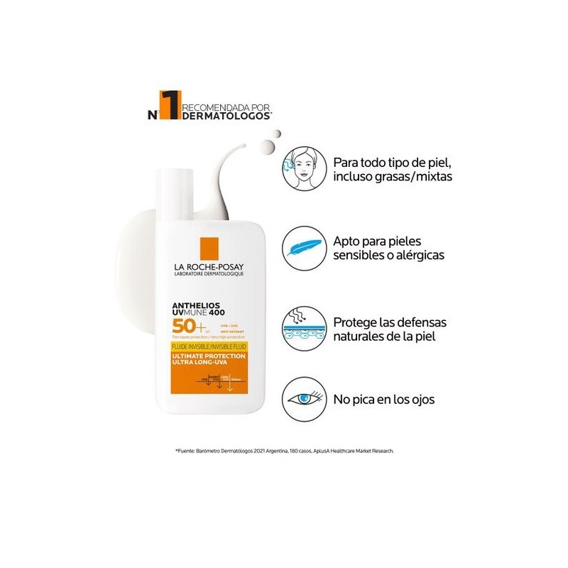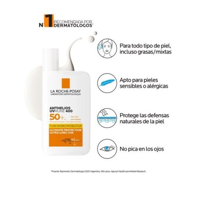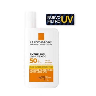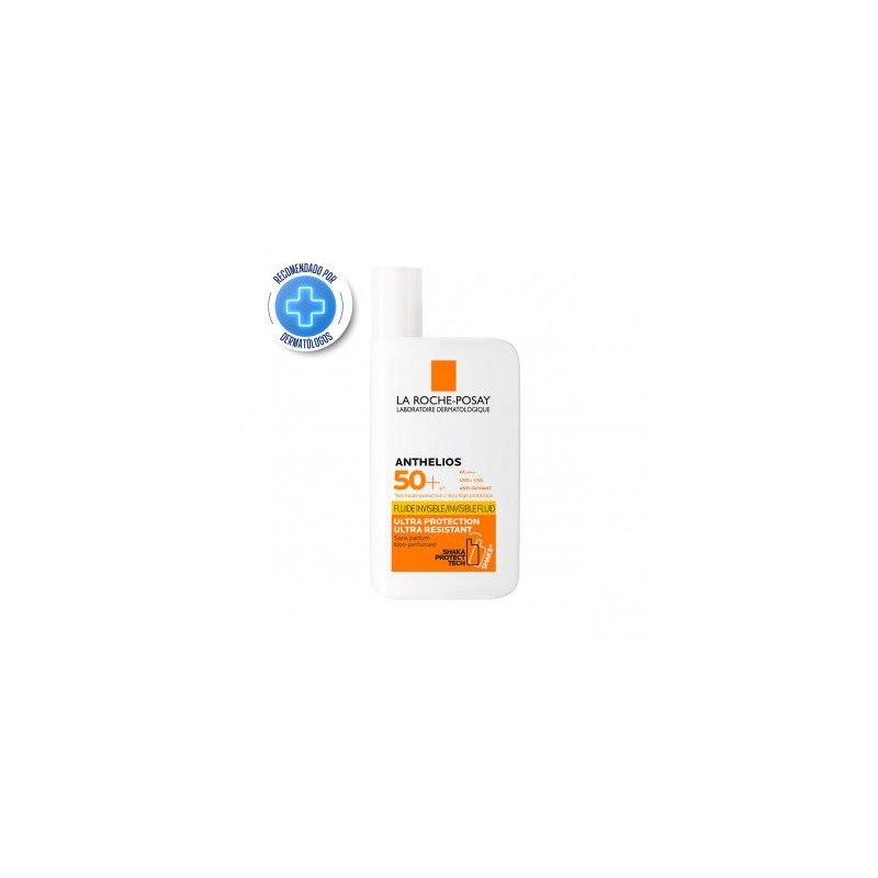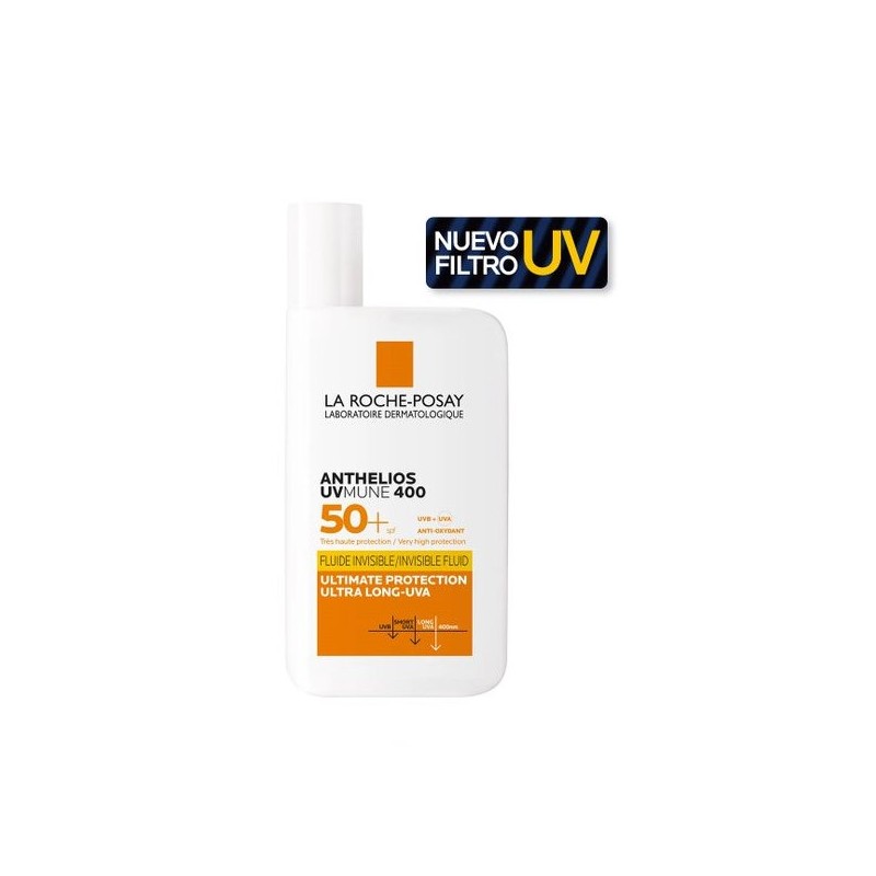 La Roche-Posay Anthelios Fluido Invisible SPF50+ 50ml es un protector solar facial de alta protección diseñado para pieles sensibles y propensas a intolerancias solares. Este fluido ultraligero ofrece una defensa eficaz contra los rayos UVA y UVB, gracias a su tecnología de filtros patentada Mexoplex, mientras mantiene un acabado invisible y no graso en la piel. Ideal para quienes buscan una protección solar diaria que se integre fácilmente en su rutina de cuidado facial, este producto combina seguridad dermatológica con una textura cómoda y resistente al agua.