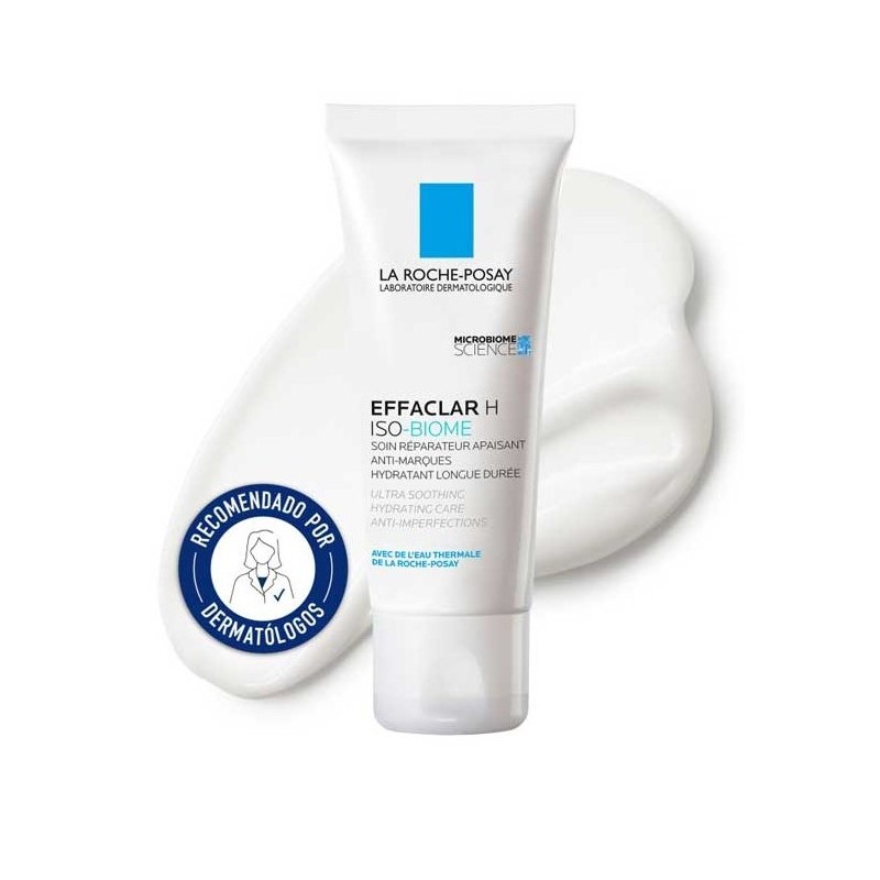 Effaclar H Iso-Biome de La Roche-Posay es un tratamiento hidratante para pieles grasas o propensas al acné que busca equilibrar la producción de sebo, reducir la aparición de imperfecciones y fortalecer la barrera cutánea. Esta fórmula contiene ingredientes que ayudan a restaurar y mantener el equilibrio de la microbiota cutánea, reduciendo la producción de sebo y proporcionando hidratación sin obstruir los poros.