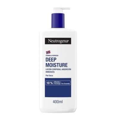 Neutrogena Hidratación Profunda Loción Corporal para piel seca ofrece hidratación inmediata y duradera con Tecnología Pro-Ceramida y 10% de glicerina.