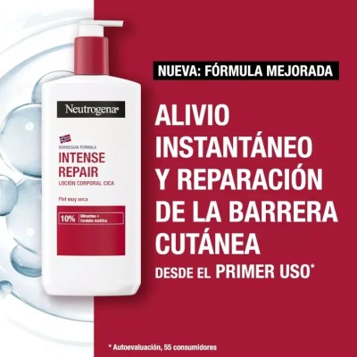 Esta crema reparadora con Fórmula Noruega® está diseñada para actuar como una “venda” hidratante regeneradora, ayudando a reparar la piel muy seca, con picores y áspera desde la primera aplicación. La fórmula contiene pantenol y alantoína, ingredientes conocidos por sus propiedades calmantes y regeneradoras, que proporcionan un alivio inmediato y un confort duradero.